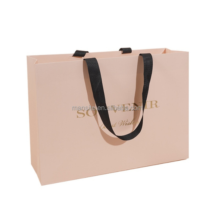 Bolsa de papel Kraft resistente al desgarro personalizada Bolsa de papel de compras de lujo con asa de cinta Bolsas de papel Embalaje